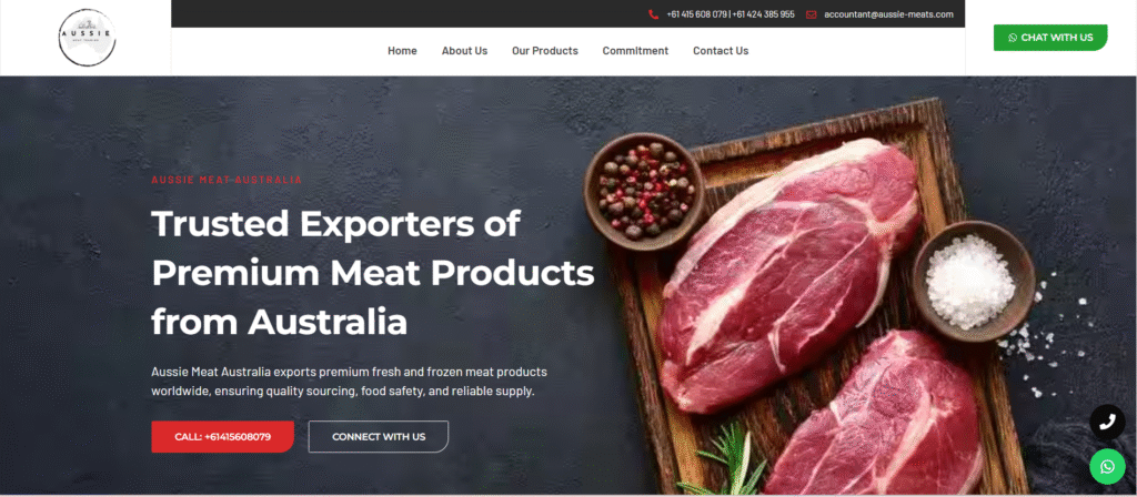 Aussie Meat Australia exports premium fresh and frozen meat products worldwide, ensuring quality sourcing, food safety, and reliable supply.